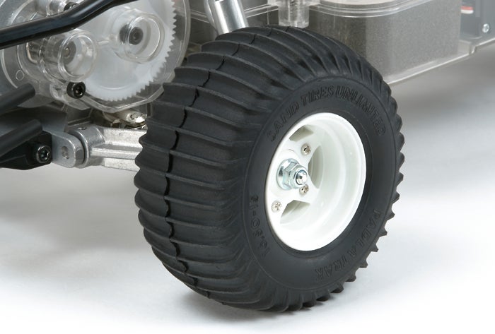 Il est de retour après 30 ans ! Sorti à l'origine en 1979, le Sand Scorcher R/C a été grandement accueilli par les fans du monde entier avec sa forme humoristique et son superbe mécanisme. En restant fidèle à la disposition de base de l'original tout en incorporant de nombreuses pièces raffinées, cette version rééditée du Sand Scorcher vous rappellera l'original. Ce modèle reproduit de manière réaliste la forme unique du buggy qui a été vu lors de la course à un seul coup à "Baja 1000" en Californie, USA. La carrosserie est moulée en polystyrène blanc et peut être peinte avec des peintures pour maquettes en plastique. Le châssis 2 roues motrices arrière présente des performances de conduite réalistes et agressives qui vous enthousiasmeront sans aucun doute.
